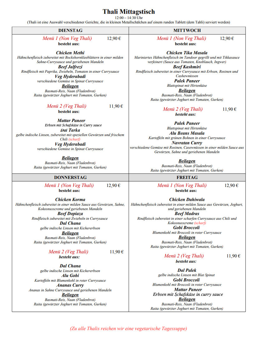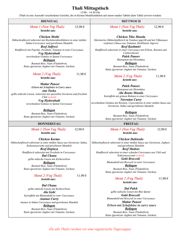 Lust auf ein leckeres, ausgewogenes Mittagessen? Probieren Sie unser Mittagstisch Thali -